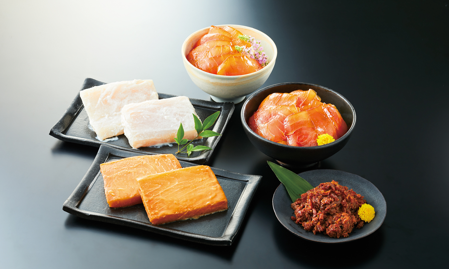 生で食せる新鮮な「かじきの味噌漬・粕漬」。忘れられな味わい・こだわりの「かじきのほぐし煮」。さらに人気商品の「びんとろのづけ丼の具」を加えた、羽床を代表する商品の詰合です。
