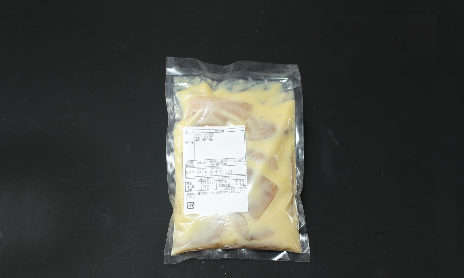 内容量 1袋(240g) 保存方法 要冷凍(-10℃以下) 賞味期限 冷凍30日 原材料 メカジキ<台湾産>、味噌(大豆を含む)、味醂、焼酎、食塩