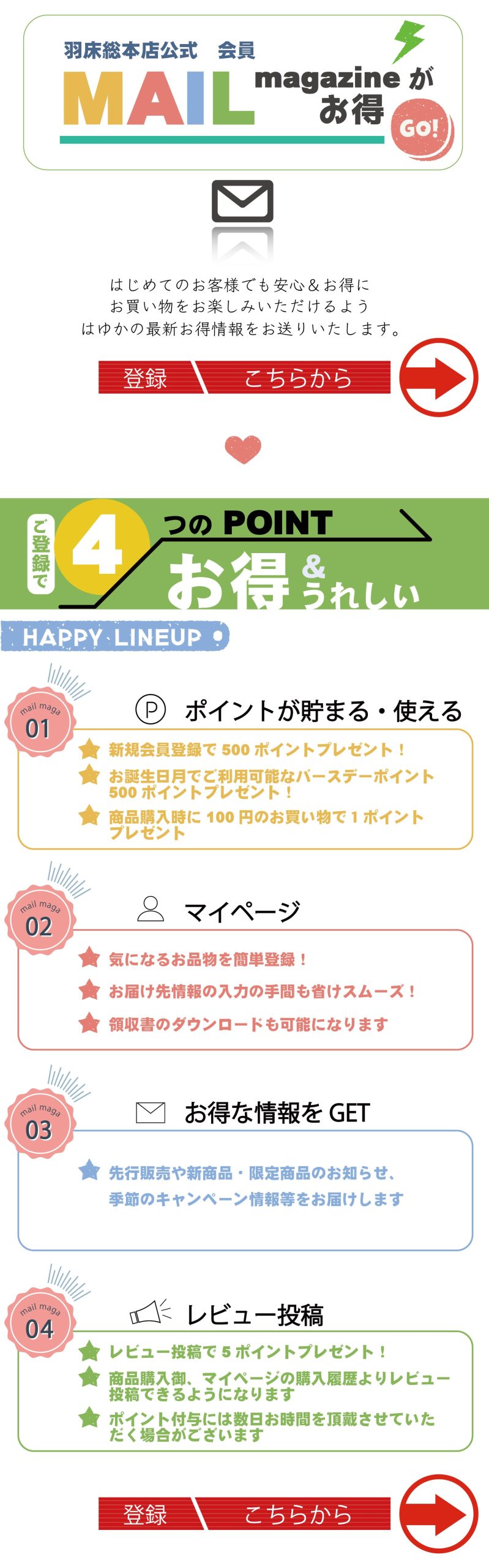 羽床総本店 お得&うれしい情報たっぷり