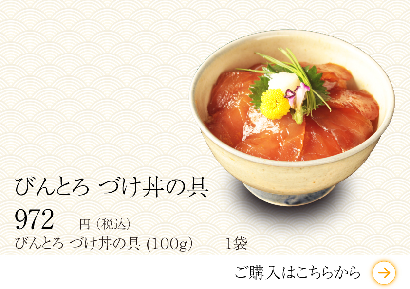 <づけ丼の具>天然の本まぐろの中トロを特製のづけだれに漬け込みました。